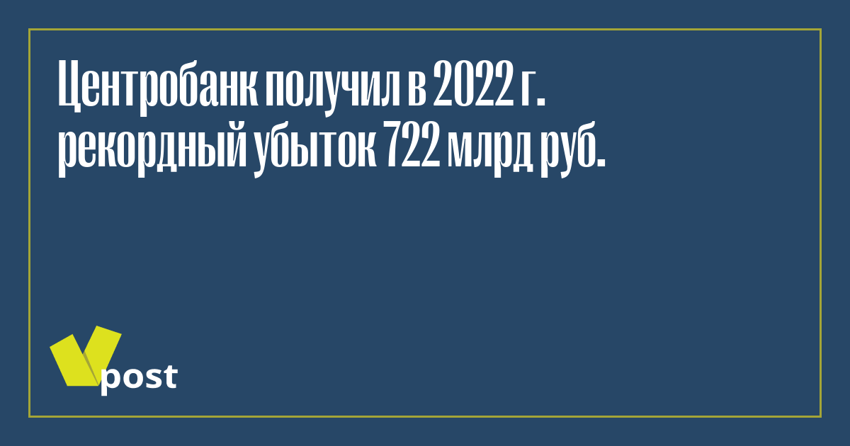 Банк России шестой год подряд получает чистый убыток, но на этот раз рекордный — 721,7 млрд руб. по итогам 2022 г.