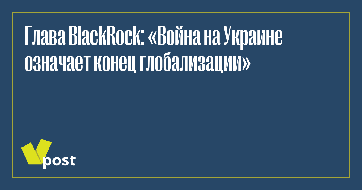 Российско-украинский конфликт приведет к росту инфляционного давления и масштабной переориентации логистических цепочек, что знаменует собой конец эпохи глобализации. Об этом заявил Ларри Финк, исполнительный директор BlackRock, крупнейшей инвестиционной компании, которая управляет активами в размере $10 трлн, пишет FT.